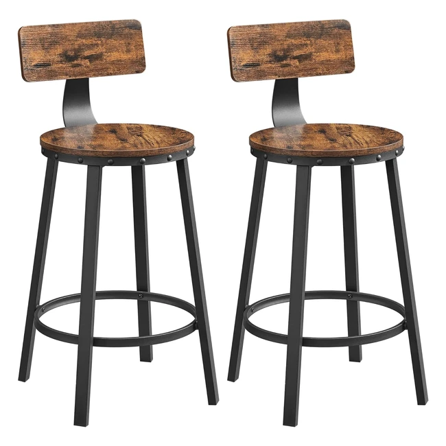 VASAGLE Bar Stools Set of 2 - High Back, Steel Frame, Easy Assembly - Industrial Rustic Brown and Black