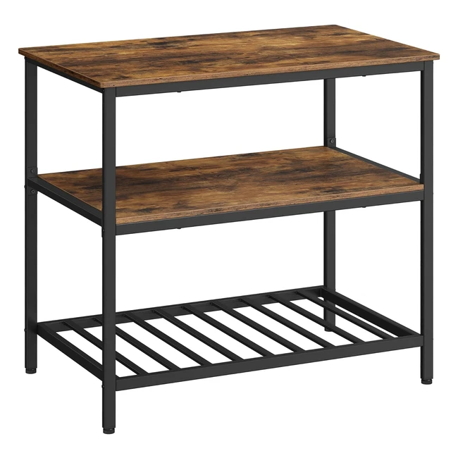 VASAGLE Küchenregal mit großer Arbeitsplatte 3-stufiges Gewürzregal Stahlrahmen 60 x 100 x 90 cm Industrie einfacher Aufbau Vintage Braun/Schwarz KKI005B01