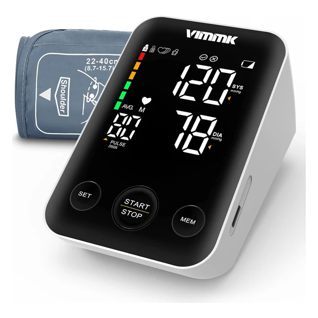 VIMMK Blutdruckmessgerät Oberarm digitales Messgerät hoher Blutdruck LED-Display Arrhythmieerkennung Pulsmessung 2 x 120 Speicher-Manschette 2240 cm