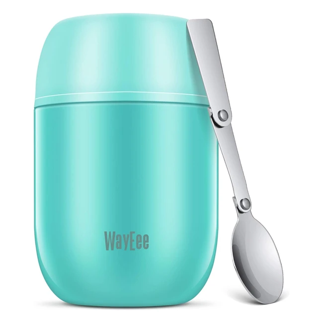 Wayeee Food Flask Stainless Steel 450ml Blue - Double Insulated Design with Folding Spoon