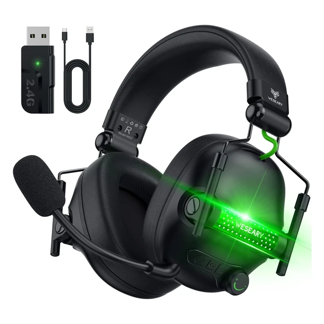Weseary Wireless Gaming Headsets for PS5 PS4 PC Switch - 24GHz USB Headphones with Mic 3D Stereo Bluetooth RGB Light - 50H Battery Life
