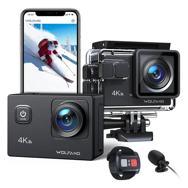 Wolfang Action Cam GA100 4K 30fps 20MP WiFi PC Camera - Fotocamera per Casco Subacquea 40m Impermeabile - Videocamera EIS Telecomando 2x1050mAh Batterie Moto Cam