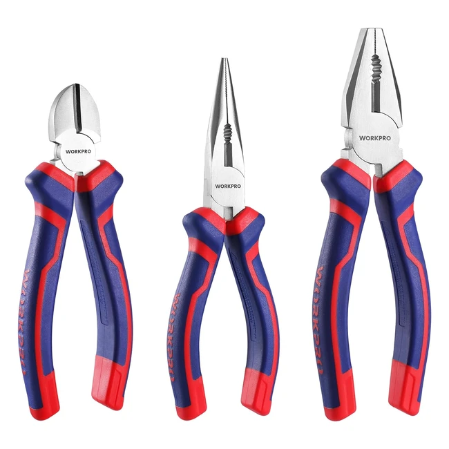 Workpro 3-Piece Pliers Set 160mm Long Nose, 160mm Diagonal Cutting, 180mm Combination Plier