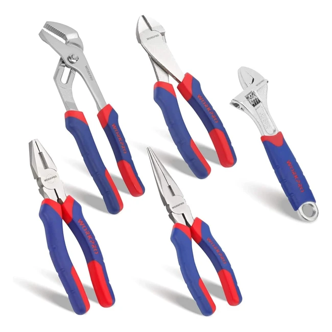 WorkPro 5-Piece Pliers Set - Water Pump, Combination, Long Nose, Diagonal Cutter, Adjustable Wrench