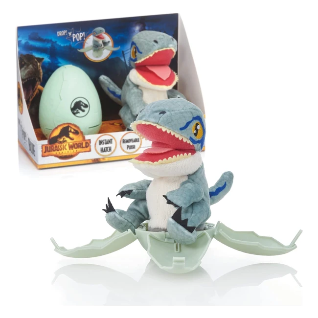 Wow Stuff Jurassic World Drop n Pop Dino Blue Velociraptor Dinosaur Egg with Pop-Up Plush Toy