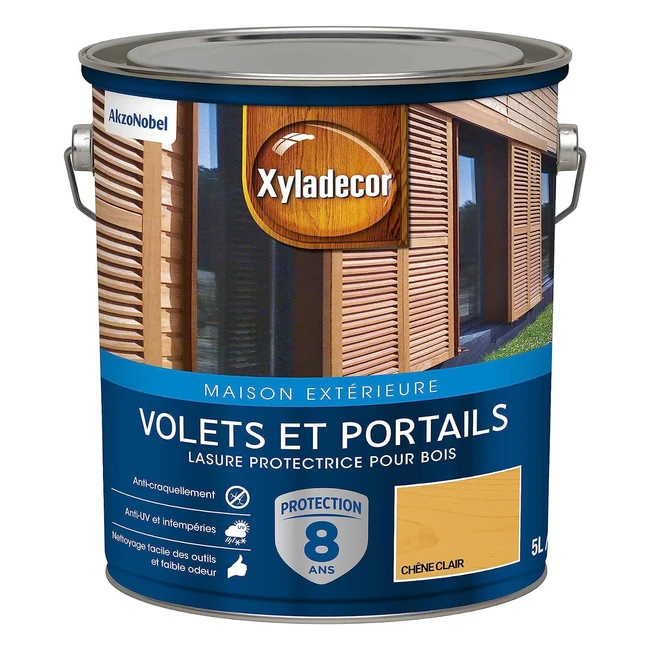 Xyladecor Lasure Protectrice Bois Extérieur Volets Portails Portes Fenêtres Satin Chêne Clair 5L