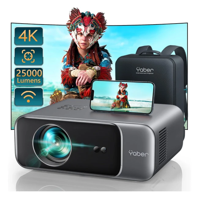 Yaber V9 4K Portable Projector 25000 Lumens FHD 1080P Auto Focus WiFi6 Bluetooth 52 Smart Home Cinema Projector