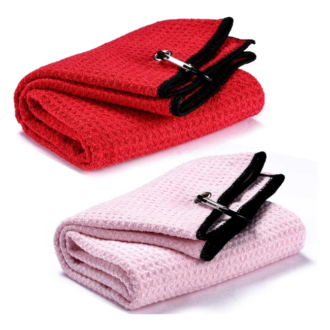 Yizerel 2 Pack Trifold Golf Towel Set - Microfiber Fabric - Waffle Pattern - Heavy Duty - 2 Pcs 2 Colors