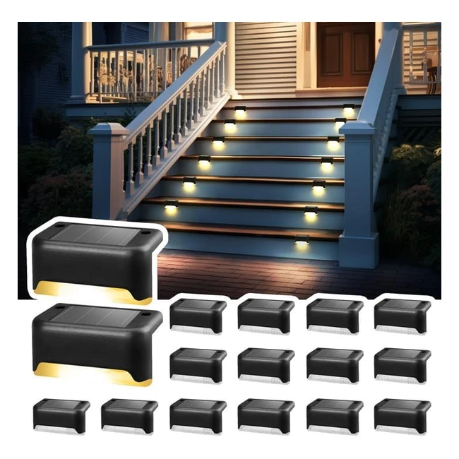 16 Pack Solar LED Stair Lights - Waterproof Outdoor Decoration - Black/Warm White