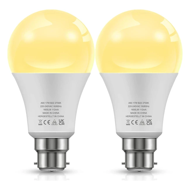 2 pack LOHAS B22 LED Bulbs 17W 1600LM Warm White 2700K Non-dimmable Energy Saving Light Bulbs