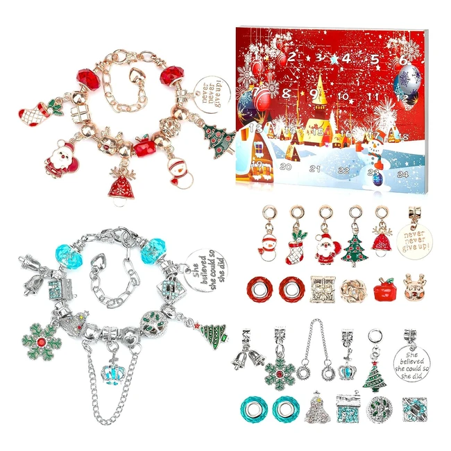 2023 Girls Advent Calendar Charm Bracelet Kit | 24 Charms & Beads | Christmas Themed DIY Jewelry Set