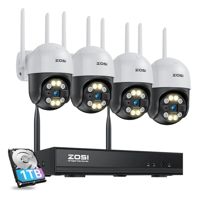 2K PTZ Camera ZOSI 8CH Wireless Security System 3MP CCTV with 2-Way Audio, Night Vision, IP66 Waterproof - 1TB HDD