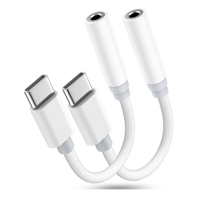 2pack adaptateurs USB C vers prise jack 35 mm - Convertisseur de câble pour casque aux audio - Compatible avec iPhone, Samsung, Huawei, Pixel