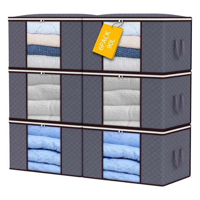 90L Storage Bags 6Pack - Large Capacity Clothes Storage Bags with Zips - Foldable - Breathable Fabric