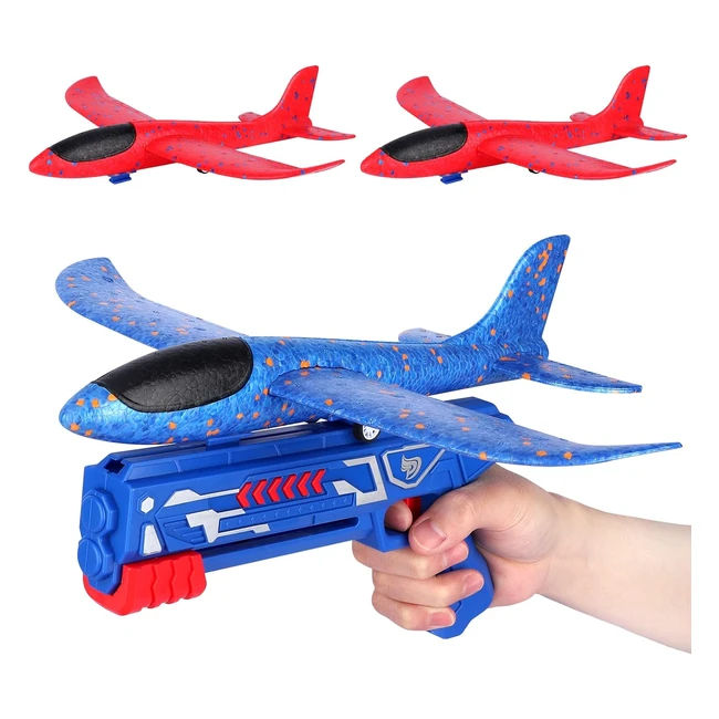 Aereo Polistirolo con Pistola Catapulta - Regalo Natale - Giocattolo Aliante Aeroplano Schiuma - Bambini 3-10 anni