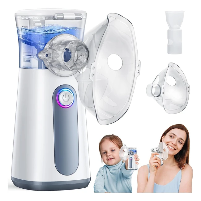 Aerosol Portatile Silenzioso per Adulti e Bambini - Ultrasuoni Ricaricabile USB-C - 2 Maschere - Efficace Nebulizzatore