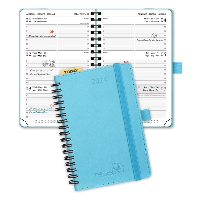 ¡Planifica tu tiempo con nuestra agenda 2024! Diseñada para ayudarte a organizar mejor tu vida, cada semana cuenta con espacio para tus ideas e inspiración. Incluye páginas adicionales para festivos, gastos, cumpleaños, contactos y más. Con su regla y marcadores de cinta, podrás encontrar rápidamente lo que necesitas. La cubierta de piel de PU y el papel de alta calidad hacen que sea resistente y duradera. ¡Compra ahora y contribuye al desarrollo sostenible! #Agenda2024 #PlanificadorSemanal #Organización