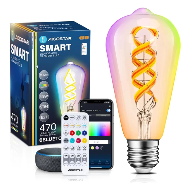 Aigostar Mesh Ampoule Connectée Alexa E27 Bluetooth ST64 Ampoule LED Edison Vintage Lampe Filament Dimmable 49W Multicolore RGB2700K6500K