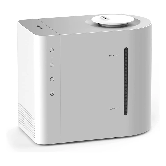 Über dieses Produkt: Verstellbare Nebelausgabe - Schnelle Nebelabgabe. Der Nebelauslass kann flexibel von 125 auf 300 ml/h geändert werden, um die beste Luftfeuchtigkeit zwischen 30 und 60 aufrechtzuerhalten. Der Hu450 Luftbefeuchter kann in 5 Sekunden Nebel erzeugen, um die Luftfeuchtigkeit im Raum schnell zu erhöhen und allgemeine Allergiesymptome wie Husten, verstopfte Nase, Halsschmerzen und trockene Haut zu lindern. Leistungsstarke Befeuchtungskapazität - Genießen Sie den kühlen Nebel zur Luftbefeuchtung von 2045 m2 großen Räumen, Kinderzimmern und Umgebungen mit Pflanzen für bis zu 40 Stunden ohne Nachfüllen dank des kompakten 43 l Behälters. 360°-Düse - Einfache Kontrolle der Nebelauslassrichtung mit der 360°-Düse. Mit einer Nebelhöhe von über 0,8 Metern und 15 Mikron großen Nebeltröpfchen sorgt der Befeuchter schnell für ein frisches Klima und macht den Schreibtisch nicht nass. Störungsfreier Schlaf - Calmist 30-Geräuschunterdrückungstechnologie ermöglicht es dem Befeuchter, di
