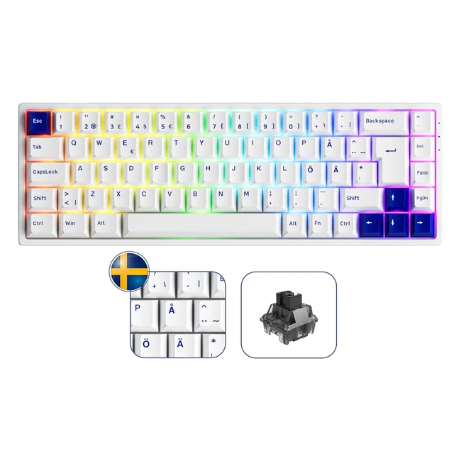 Akko 3068B Plus Clavier Mécanique RVB Layout QWERTY ISO Nordic Mini Clavier de Jeu Compact 60 3 Modes Hotswap Touches PBT Profil Cerise Commutateur Linéaire CS Jelly Noir Bleu