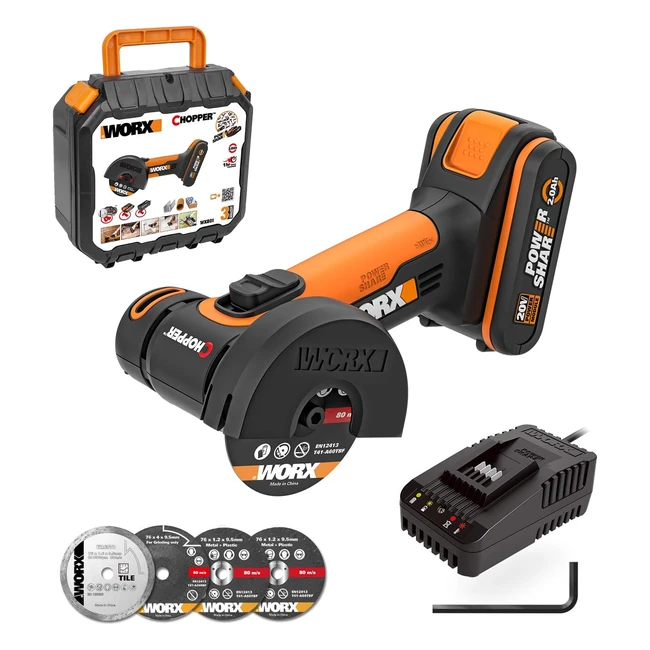 Amoladora Angular Profesional Worx 18V 20V Max 19500rpm Disco 76mm 2Ah Batería 3 Discos Corte 1 Disco Esmerilado WX801