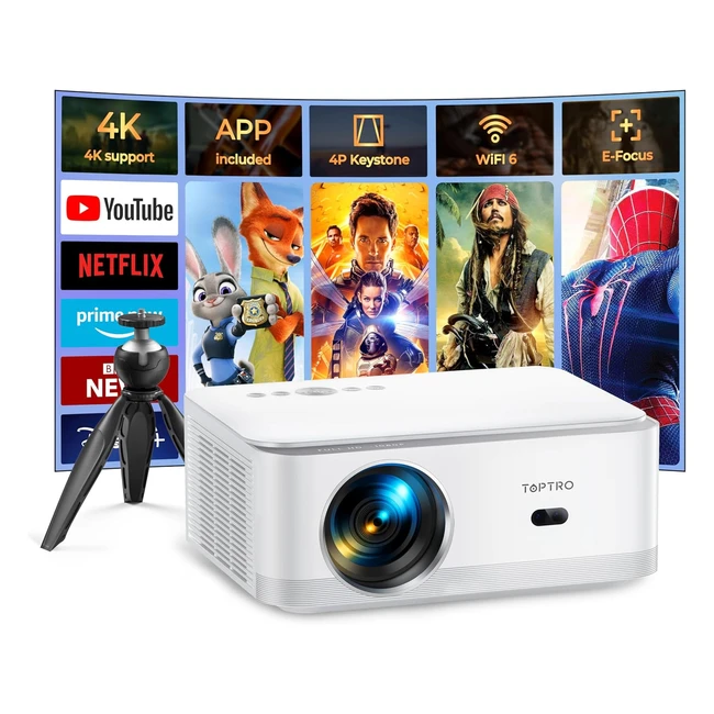 -30%Native 1080P 500ANSI 200001 Contrast Ratio TopTro X6 projector equipped with real native 1920x1080 resolution and support 4K which provides clear and detailed images without losing any details. Builtin Android system, Builtin Netflix, Prime Video. Electric focus, 4Pauto vertical keystone. Ultra fast and stable WiFi 6, Bluetooth 5.2. Tripod, multimedia connection, warranty. See more product details below.