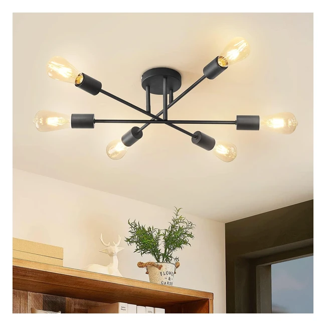 Upgrade your home with this modern 6 head sputnik light in black. Perfect for living room, bedroom, dining room, hallway, and more. Smart choice for your home lighting. Excellent quality with three years warranty. Create a stylish atmosphere with this unique ceiling light.