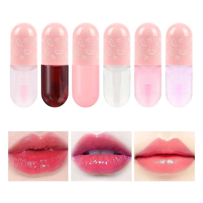 aoowu 6 pcs Hydrating Lip Oil Set Fruit-Flavored Plumping Lip Oil