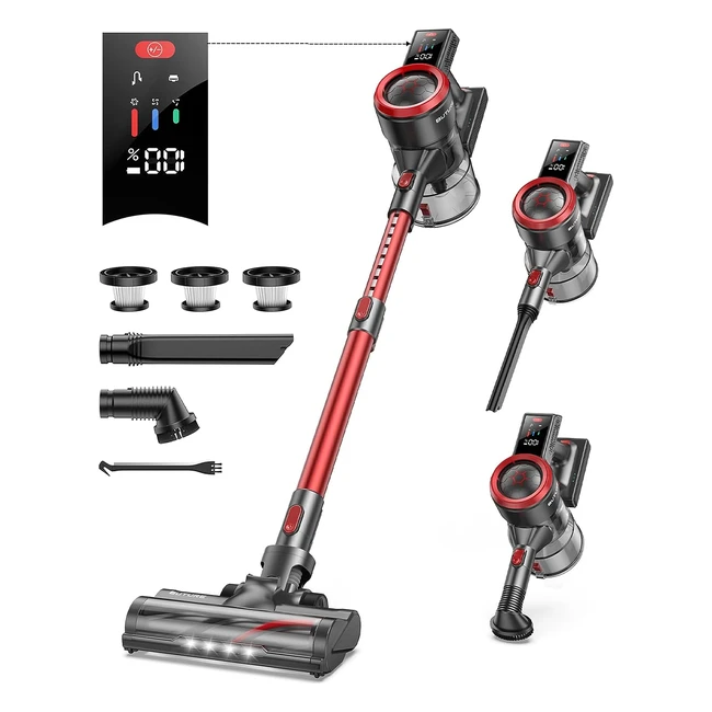 ¡Potencia de aspiración sin precedentes de 33kpa! La aspiradora sin cable más potente de 33kpa con motor mejorado de 450W. Recoge todo el polvo y las pelusas en un abrir y cerrar de ojos. ¡Perfecto para todo tipo de limpieza! ¡55 minutos de funcionamiento! ¡Cepillo para alfombras sin enredos! ¡Limpieza inteligente con pantalla LED y luz LED para iluminar el polvo diminuto! ¡Filtración multicapa y una amplia gama de accesorios! ¡No te lo pierdas!