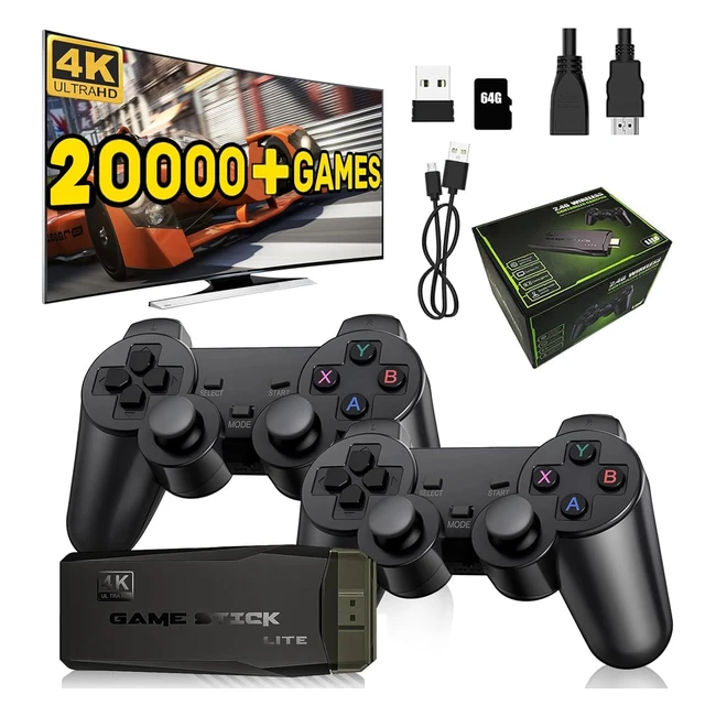 -15%Experience tens of thousands of retro video games with this compact and portable retro game console stick. Enjoy 20000 classic games on your TV at home or in a hotel. Includes dual 2.4G wireless controllers for 2-player fun on a big 4K HD screen. Easy to use with no extra settings required. Perfect gift for kids and adults, providing entertainment for family gatherings, birthday parties, and more. Buy now and relax with retro gaming!