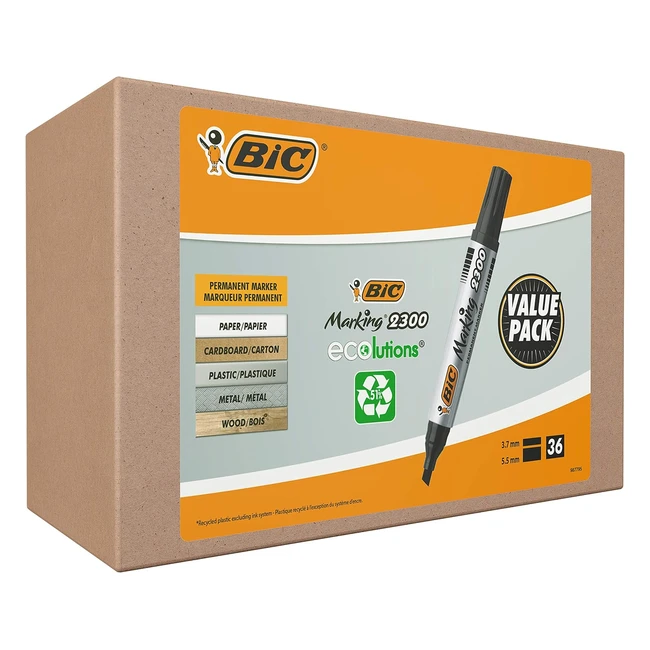 BIC Marking 2300 Ecolutions Permanent Markers - Medium Chisel Tip - Black - Box of 36