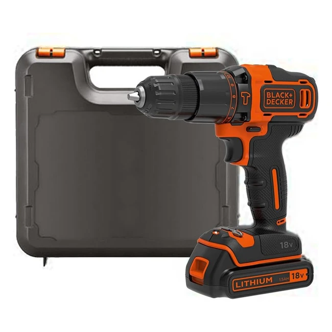 Black+Decker Akkuschlagbohrschrauber 18V 1,5Ah 2-Gang Getriebe Drehmomentvorwahl Softgriff BDCHD18K