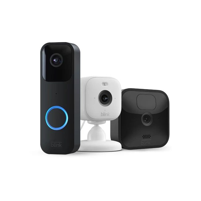 Blink Haussicherheitsstarterset: 1 Außenkamera, Akku, Innenüberwachung, 1 Türklingel mit Kamera, 1 Sync Module