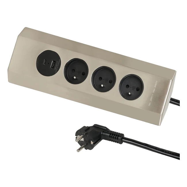 -16%Optimisez votre cuisine avec le bloc multiprise d'angle Electraline 35458 en inox. Facile à fixer au mur, il offre 3 prises norme française 16A, 2 ports USB 3.1A et un câble de 2m. Profitez de sa puissance maximum de 3680W pour alimenter vos appareils. Ne manquez pas cette offre exclusive !