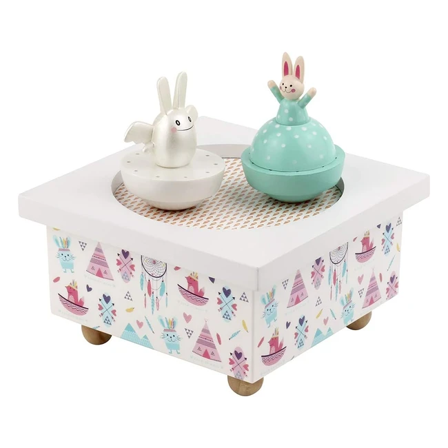 Boîte à musique Ange Lapin Maman Lapin - Idéal cadeau de naissance - 2 figurines amovibles