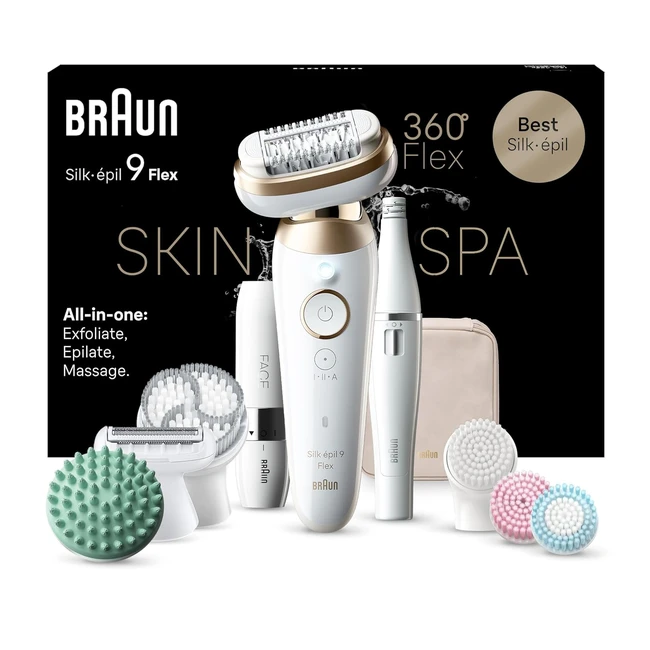 Braun Silk-épil 9 Flex SkinSpa All-in-One Set - Damen Epilierer 9681 3D - Langanhaltende Haarentfernung - FaceSpa Gesichtshaarentferner - Weißgold