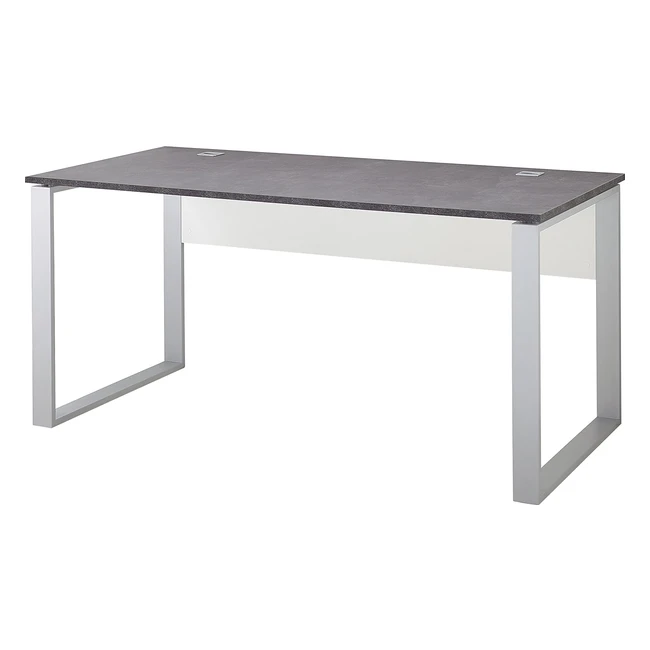 -5%Profitez de ce bureau GWALTINO en blanc/basaltosombre de Germania Die Möbelmacher. Dimensions : 158 x 75 x 79 cm. Bureau avec grand dessus de table et deux passages de câbles pratiques. Cadre de base en métal et plateau de table en panneau de particules mélaminé. Couleur basaltosombre. Pieds et bords en ABS de haute qualité. Revêtement en résine de mélamine. Fabriqué en Allemagne.