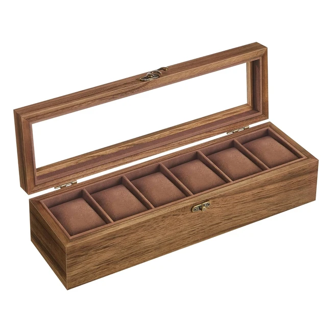 Caja para Relojes Songmics con 6 Compartimentos - Madera Maciza - Tapa de Cristal - Regalo - Nogal Rústico JOW006K01