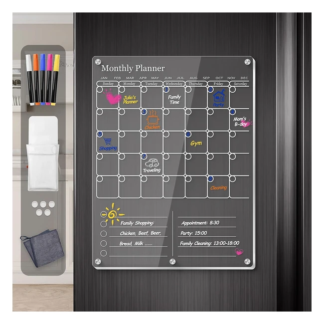 -5%Calendrier acrylique frigo transparent de haute qualité avec grands espaces d'écriture. Aimants puissants avec couvercle en silicone. Écriture lisible et facilement nettoyable. Utilisation polyvalente et combinaisons multiples. Décorez votre frigo et améliorez le plaisir en famille.