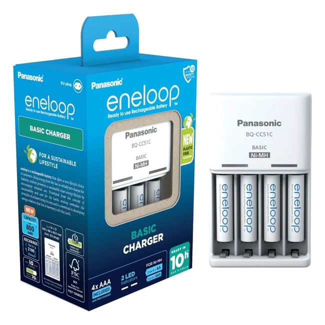 Caricabatterie Panasonic Eneloop Basic per 2 o 4 batterie AAAA NiMH - LED Indicatori e 6 Funzioni Sicurezza