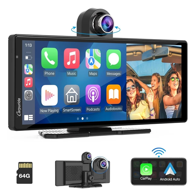 Carpuride W903 Apple Carplay Inalámbrico Android Auto Dash Cam 93cm HD IPS Cámara Frontal 25K Grabación Bluetooth GPS Siri