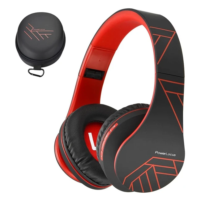 Casque Bluetooth Sans Fil Powerlocus Stéréo Pliable avec Micro Intégré - Noir/Rouge