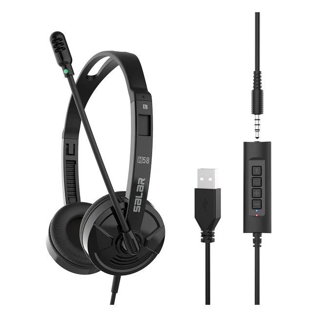 Casque USB avec Micro 3.5mm - Casque PC Stéréo Filaire avec Antibruit et Contrôle de Volume - Skype, Centre d'Appels, Conférences Téléphoniques, Chat en Ligne