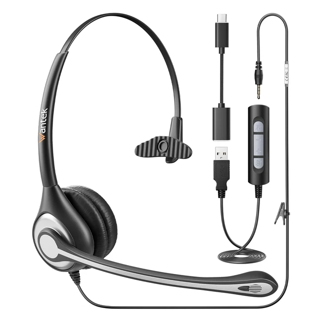 Casque Wantek avec Microphone Réduction du Bruit Stéréo USB Type C 3.5mm Jack Contrôle Volume d'Appel Bureau 601FUSB