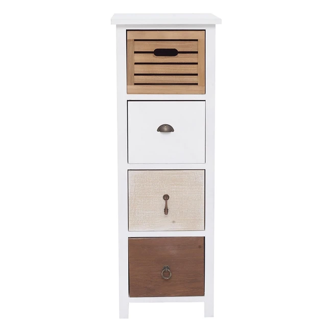 Acquista subito la cassettiera vintage Rebecca Mobili con 4 cassetti bianco/marrone/beige. Misure: 89x31x27 cm. Perfetta per la camera, il bagno o il salotto. Realizzata in legno di alta qualitĂ . Spedizione gratuita!