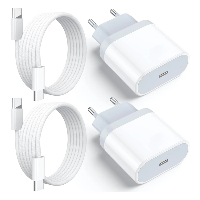 Chargeur rapide USB-C 20W avec câble 2m pour iPhone 15/15 Pro/Max, iPad Pro/Air/Mini 10ème génération