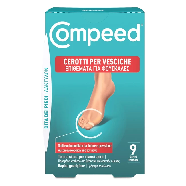 -15%Protezione istantanea e guarigione rapida per vesciche sulle dita dei piedi. Tecnologia avanzata a base di gel idrocolloide per una guarigione naturale. Design impermeabile e traspirante per protezione antibatterica. Sollievo immediato e duraturo. Confezione da 9 cerotti.