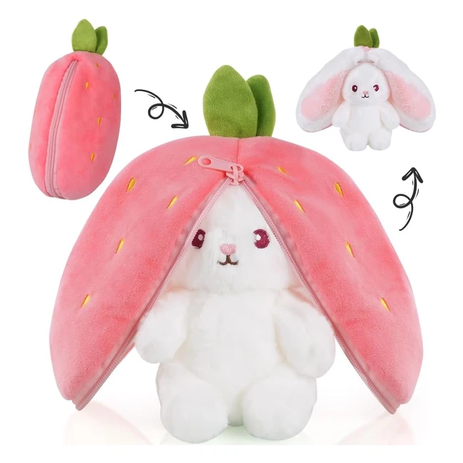 -15%¡Transformarse en conejo! Peluche envuelto en fresas. Cambia fácilmente de fresa a conejo blanco. Material suave y relleno de algodón PP. Tamaño: 23 cm. Apto para llevar a todas partes. Ideal para niños y decoración del hogar. ¡Regalo perfecto! #Peluche #Conejito #Fresa #Zanahoria #Regalo #Pascua #Juguete #Suave #Decoración #Niños