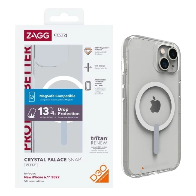 Coque de protection ZAGG Gear4 Crystal Palace Snap D30 pour iPhone 14 - Fine, légère, résistante aux chocs, Magsafe