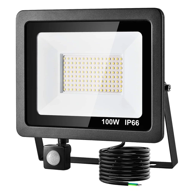 -26%Super bright and energy-saving 85% with 128 high-quality LED beads, this 100W LED spotlight produces 8000 lumens of cold white light. IP66 waterproof for safe outdoor use in rain, sleet, and snow. Improved motion detector with automatic on/off function. Efficient heat dissipation for long service life. Ideal for patio, courtyard, storage, garage, etc. 2m cable included. Satisfaction guaranteed.